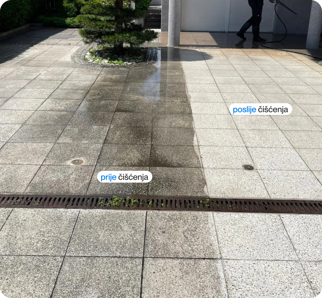 Sigurno i učinkovito uklanjamo alge i nečistoću s tvoje terase ili prilaza te im vraćamo prvotni izgled.